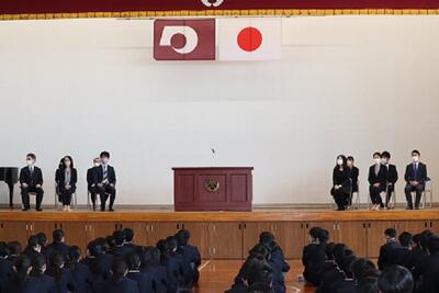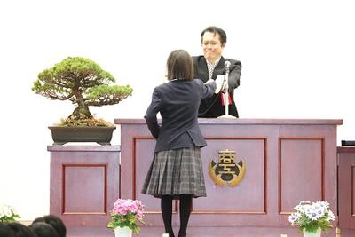 令和5年2月28日(火)、卒業生の表彰式と同窓会からの記念品贈呈式を行いました。