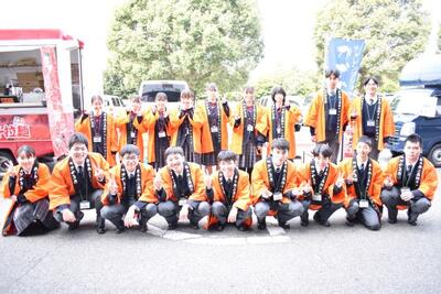 | 記念撮影です。 当日は、生徒も大勢参加してくれました。 朝からずっと来場者の対応をしていただき、 ありがとうございました。 また、今回のような機会を与えてくださった 熊本県教育委員会をはじめ、商工の出展に 協力いただきましたシナジーシステム(株)様、 味千ラーメン様に心より感謝いたします。 |