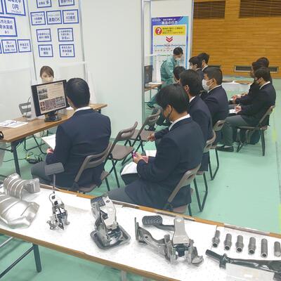 生徒たちは普段の生活では触れる機会のない生産設備の説明を受け、実際にロボットが動く様子をとても興味を持ち見学していました。