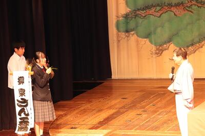 私自身のことを言うと、実はこれまでほとんど落語に関心がありませんでした。しかし今回聞いた落語は、本当に面白くて、信じられないくらい笑いました。商工生みんな、同じ気持ちです。私たちの故郷が誇る八千代座で、伝統芸能に触れられたことをすごく嬉しく思います。