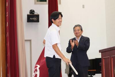 推戴式では、高校野球選手権熊本大会及びビジネス計算競技と弁論の全国大会に出場される皆さんにエールを送りました。