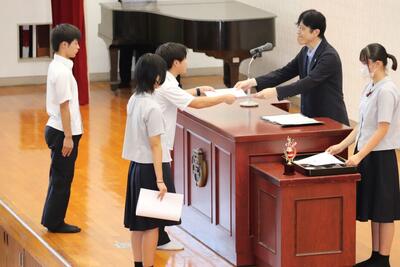 表彰式では、競技大会等で優秀な成績を収めた多くの生徒が表彰されました。