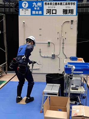 現在、河口君は11月27日(水)・28日(木)に横浜アリーナで開催される第5回電気工事技能競技全国大会【高校生の部】に向けて九州地区代表として、毎日遅くまで練習に取り組んでいます。全国大会でも日本一を目指して精一杯頑張ります!