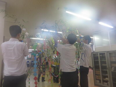今年も機械科中島先生と機械整備部の皆さんが、七夕飾りを作ってくれました