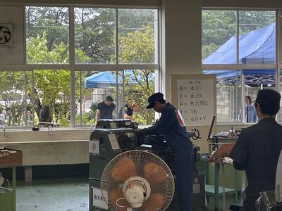 本校からは旋盤作業部門に機械科3年村上貴俊君(山鹿中出身)、電気工事部門に電子機械科3年河口雅翔君(山鹿中出身)、電子回路組立部門に電子機械科3年髙木真吾朗君(鹿南中出身)の3名が参加しました。