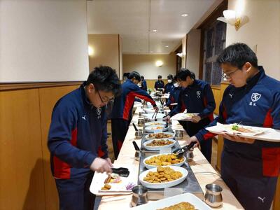 夕食の一コマです。明日からのスキー研修は体力勝負です。しっかりいただきましょう!