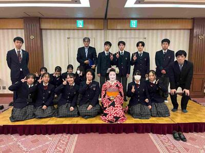 夕食後は舞妓鑑賞をしました。舞妓さんの年齢は16歳とのことで、同じ学年で驚いていました。