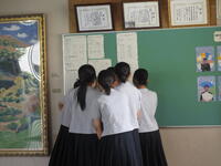 3年生の課題研究では、5つの班に分かれて、それぞれの班で、作品制作や調査・研究を行います。写真は、観光班の様子です。現在、観光班では、山鹿市の山岳や河川、史跡や建造物、食などの「観光資源」を紹介する観光マップを作成する計画です。山鹿市観光マップをどのように描くのか考えるているところです。