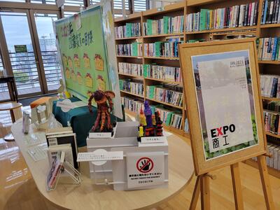 山鹿市立図書館(こもれび図書館)に図書委員の作品が展示されています。