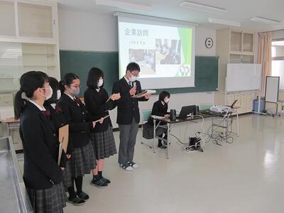 3年生が課題研究という授業の中で1年間研究してきたことをまとめ、1・2年生を前に発表しました。この授業では、これまでの学習で身に付けた知識・技術などを基に商業や工業に関する課題を発見し、解決策を探求して創造的に解決することにより、職業人として必要な資質・能力を育成することを目的としています。