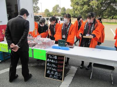 なお、配布したグッズ(クリアファイルとカトラリーセット)は山鹿署と本校がコラボレーションしたものでラベルのデザインやグッズの選択等に関わらせていただき、また普段乗ることのできない機動隊車の上でDJ活動をさせて頂いたことは卒業を控えた3年生にとって大変思い出に残る良い経験となりました。この場を借りて改めて山鹿署員の方々にお礼を申し上げます。