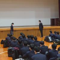 校長室にて動画による学校説明後、本校の特徴である奎堂文庫を見学いただき、商業科の特徴的な活動である自動販売機運営の実演を見学いただきました。