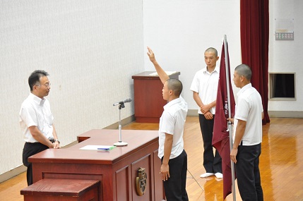 平成30年6月29日(金)、期末考査終了後、生徒会認証式及び交付式を行いました。先日の生徒会役員選挙で信任・当選した、新生徒会役員へ学校長から認証状が交付されました。新生徒会長の宇野木剛くん(D2)が、今年1年間の抱負を語り新生徒会がスタートしました。各種委員会の委員長も紹介され、いよいよ2年生が学校を背負っていく立場となりました。旧生徒会長の竹下颯人くん(D3)が一年間の活動を振り返り、全校生徒に御礼を言って、任期を終えました。