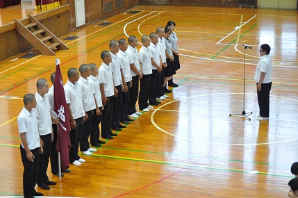 大掃除をした後、体育館で全校集会を行いました。全校集会では、生徒指導部の田中先生から、残りの夏休みの過ごし方、終戦記念日のことや2学期を迎えるにあたっての準備について話がありました。
