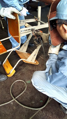 3年生は就職へ向けて活動中のため、機械整備部の1、2年生で修理をしました。足の部分が外れていたため、溶接をして固定しました。近々、鹿本中学校にお渡ししたいと思います。