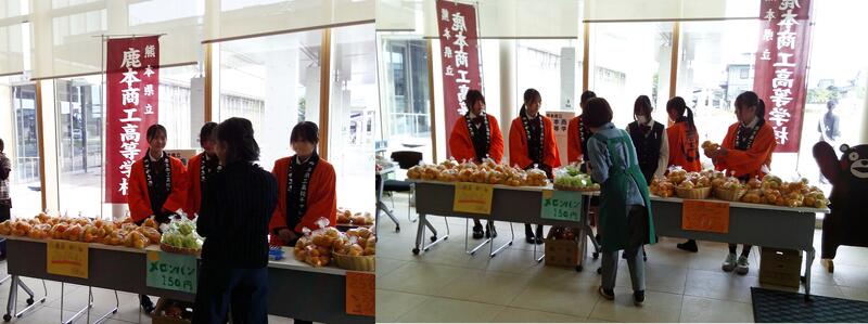 来場者を対象に、商業科・情報管理科では販売実習としてメロンパンとみかんの販売を行いました。生徒たちは商品の説明(みかんの産地やメロンパンの特徴など)を行い、笑顔で接客を行うことができていました。また、お客様からも”頑張ってね”などと温かい励ましの声を掛けて頂いていました。