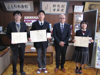 2名が税に関する高校生の作文において多くの募集の中で高く評価され、山鹿税務署から本校へ表彰がありました。