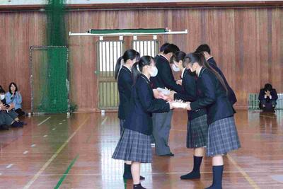 令和5年2月28日(火)、卒業生の表彰式と同窓会からの記念品贈呈式を行いました。