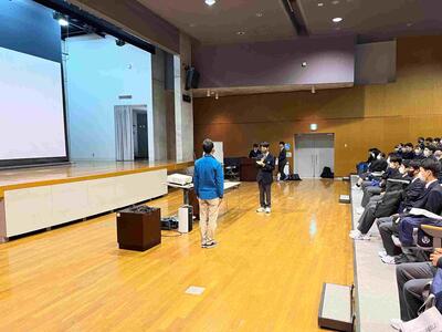 3年生が課題研究という授業の中で1年間研究してきたことをまとめ、1・2年生を前に発表しました。この授業では、これまでの学習で身に付けた知識・技術などを基に商業や工業に関する課題を発見し、解決策を探求して創造的に解決することにより、職業人として必要な資質・能力を育成することを目的としています。