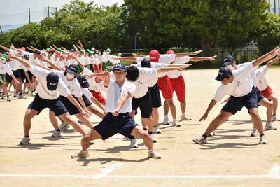 6日目は、閉会式のリハーサルから始まりました。表彰も優勝がどちらの団でもよいように、リハーサルを行いました。また、音楽部の演奏で校歌斉唱もおこないました。その後は集団演技の練習もおこないました。練習を開始した時よりも、商工体操もダンスも素晴らしい演技に仕上がっています。その後各団での応援や競技の練習が実施されました。