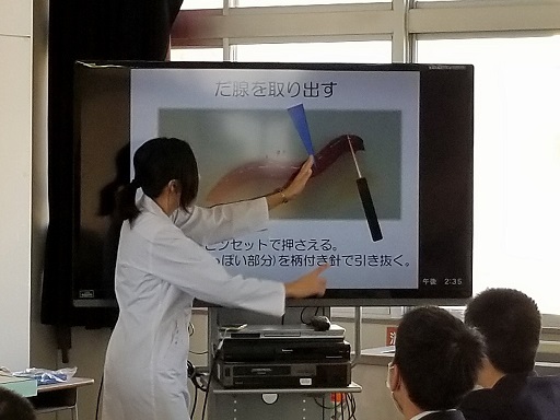 全体講演では、水俣病について正しい知識を知ることから始まるというお話があり、水銀は少量でも病気になると考えていましたが、大量に摂取することで発病することなどを知りました。各クラスでの活動の中でも、初めて知ることがたくさんありました。これからも多くの学びを通して、正しい知識を身につけ、発信していくことが大切だと感じました。(生徒の感想を一部紹介します。)