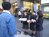 本校からは地元の洋菓子店や和菓子店とフェアトレードチョコレートで共同開発した「鹿本商工ら」と「ちょこ福」、そして熊本復興支援寄付金付きくまモンクリアファイルを販売しました。今回初めて参加して、人通りが多い中、いかに立ち止まっていただき、商品を手にとって、さらにお買い上げいただくことの難しさを学びました。反面、「おいしかったから~。」と、リピートしてくださる方もいらっしゃるなど、嬉しいこともありました。お客様の中には、本校のOB、OGの方もいらっしゃり、後輩たちが頑張る姿にエールを送ってくださいました。