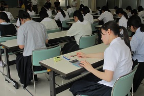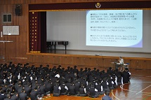 前半は中高生の現状や避妊のこと、性病のことについて話がありました。後半は日頃、助産師としてお仕事をされていてる立場から、妊娠や出産の大変さと素晴らしさ、そして神秘さについてお話をされました。最後には母親として「子」への想いをのせた動画を流されました。涙を流しながら見ている生徒もたくさんいました。お忙しい中、講演いただきありがとうございました。