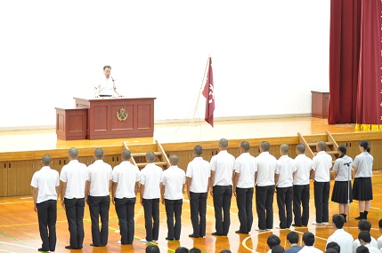 閉会式では真っ赤に日焼けした生徒も多く、頑張った証が見られました。皆さん、お疲れ様でした。また、準備にあたった生徒会の皆さん、お疲れ様でした。