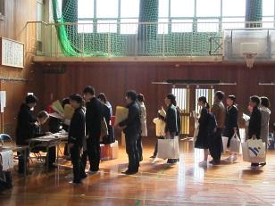 終業式が終わり、午後から合格者説明会がありました。合格した96人が参加し、各部からの説明や用具の販売が行われました。部活動生による勧誘もあり、新たな1年が始まるという想いを感じました。