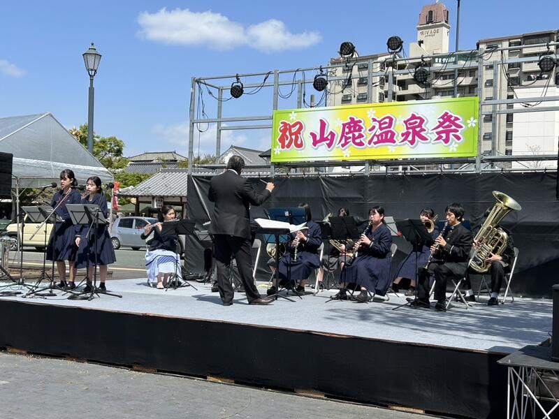 山鹿市で開催された「山鹿温泉祭2025」に、本校音楽部が出演いたしました。