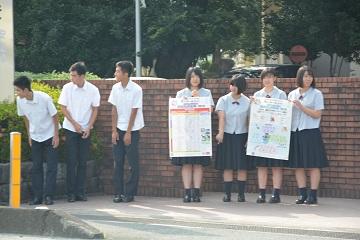 令和元年度全国高等学校総合体育大会が南九州で行われます。大会本番まで50日前となり、大会に関わる活動を行い、大会開催へ向けて機運を高めるために本校では広報活動を含めたあいさつ運動と運動部生徒による清掃活動を行いました。少しばかりですが、地域の方にも広報ができたと思います。