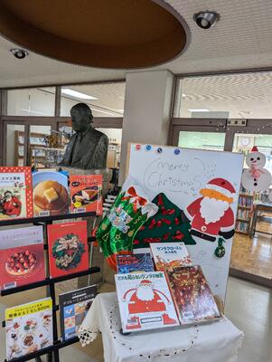 図書館×メリークリスマス 投稿日時 : 2024/12/16 学校サイト管理者 図書館前ではささやかながらクリスマスの展示をしています 現在冬休みの貸出を行っています。 1月8日(水)まで借りられますので、ぜひ本を借りに来てくださいね