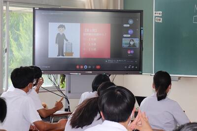 主権者教育では、選挙に関するクイズに解答したり、先日行われた熊本県議会議員熊本市1区補欠選挙に投票した生徒や先生のインタビューを視聴したりしました。