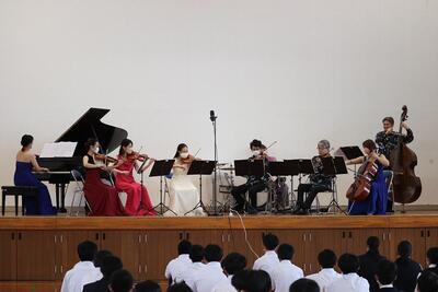 令和4年10月11日(火)、芸術鑑賞を行いました。今年度は、KMA熊本ミュージックアーティストの方々9名にお越しいただき、室内楽を楽しみました。