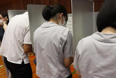 会長に1名、副会長(定数2)に3名、生徒会委員(定数4)に6名が立候補しました。