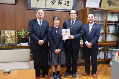 令和5年1月12日(木)、本校校長室にて「ひぎんSDGs私募債」発行記念品贈呈式が行われました。