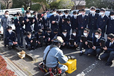 12月20日(月)に相互電気設備株式会社様に施工をお願いし、その際、電子機械科の3年生と1年生にその様子を見学(写真④~⑥)させてもらいました。特に1年生は2年次の上期に行われる第二種電気工事試験で全員受験を行うための意識の向上を図るために行いました。生徒はプロの方の手際の良さと現場での作業を間近に見て、感動していました。