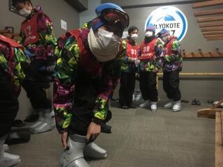 本日も晴天に恵まれ、雪質も最高なコンディションです。朝食後ウェアに着替え、明るい表情で研修に向かいました。