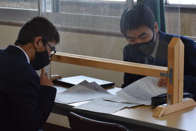 令和3年12月22日(水)に電子機械科進路ガイダンスを行いました。これは、進路実現を達成した電子機械科3年生が後輩の2年生に対して、内定や合格を勝ち取った進路先の説明や進路対策の方法を伝授するものです。2年生は、3年生から進路体験談や企業情報などを直接聞き、意見を交わす中で進路への意識の向上を図り、3年生は、自分の進路先の再確認だけでなく、コミュニケーション能力やプレゼンテーション力を育成し、社会人として相応しい人間性を身に付けるために行いました。