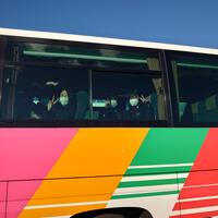 出発式が終わり、体調不良者も出ることなく、参加者全員が無事参加することができます。早朝にも関わらず多くの先生に見送られて今から3泊4日の修学旅行に出発します。