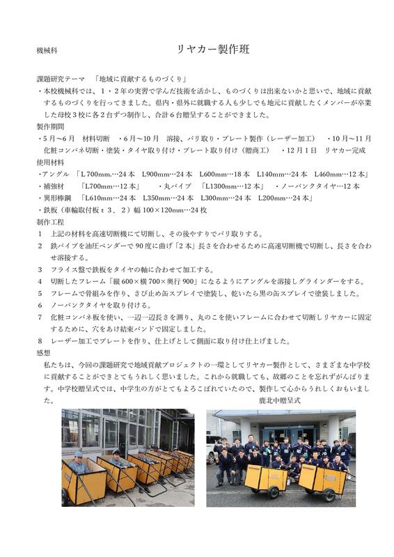 5 機械科発表 『リヤカー製作班』