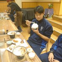 スキー研修前の栄養補給です。