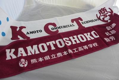 3年商業科の商品開発という授業で鹿本商工高校の限定タオルのデザインを作成しました。教科書で学んだ知識を下に、『新元号にふさわしい華やかなタオル』をコンセプトに考え、愛媛県の丸鷹産業株式会社様にアドバイスをいただきながらタオルのデザインを考えました。地域のイベントに参加した際に販売をしているので是非お買い求めください。