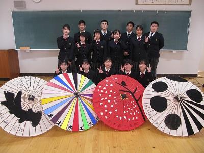 3年商業科の商品開発という授業で、2月7日から開催される『山鹿灯籠浪漫・百華百彩』に出品する和傘のデザインを考え作成しました。教科書で学んだ知識をもとに、各グループに別れて、コンセプト・ターゲットから考えデザインを考えました。2月に行われる山鹿灯籠浪漫・百華百彩で鹿本商工からは、3年生商品開発、3年生課題研究、美術部より十数点出品し、展示されています。会場に行かれた際は、是非生徒たちの作品を探してみてください。
