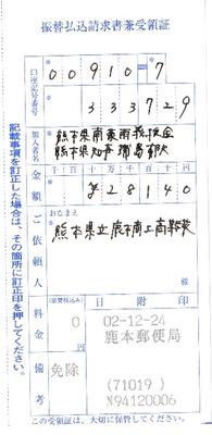 心を込めて払い込み表に記入!