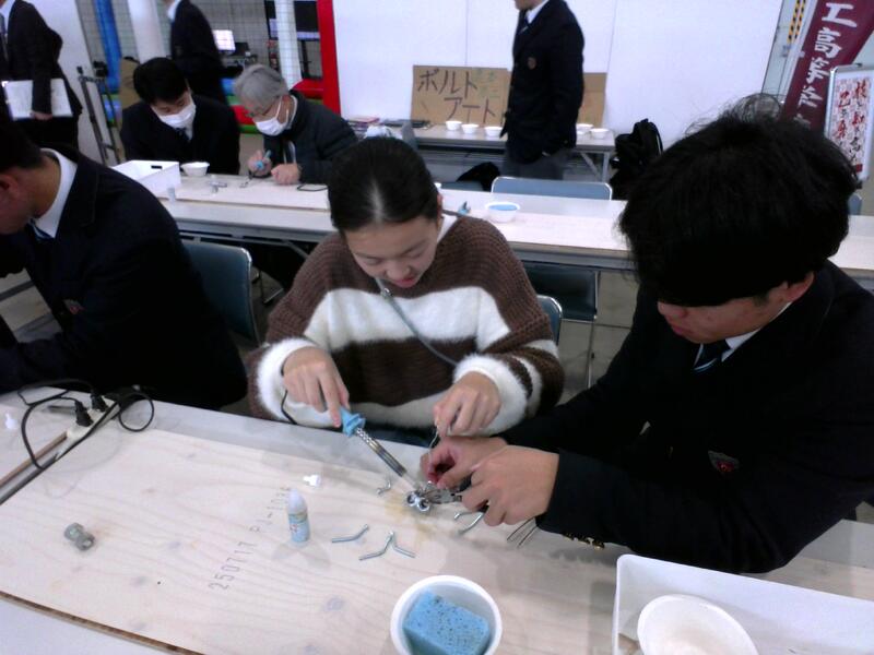 各校の日頃の学習の取り組みを多くの方々に知っていただくイベントで本校機械科ではボルトアートの体験を行いました。大変好評で準備していた30セットは午前中で終了しました。その後も多くの来場者が体験に来ていただきました。体験できなかった方々、申し訳ございませんでした。