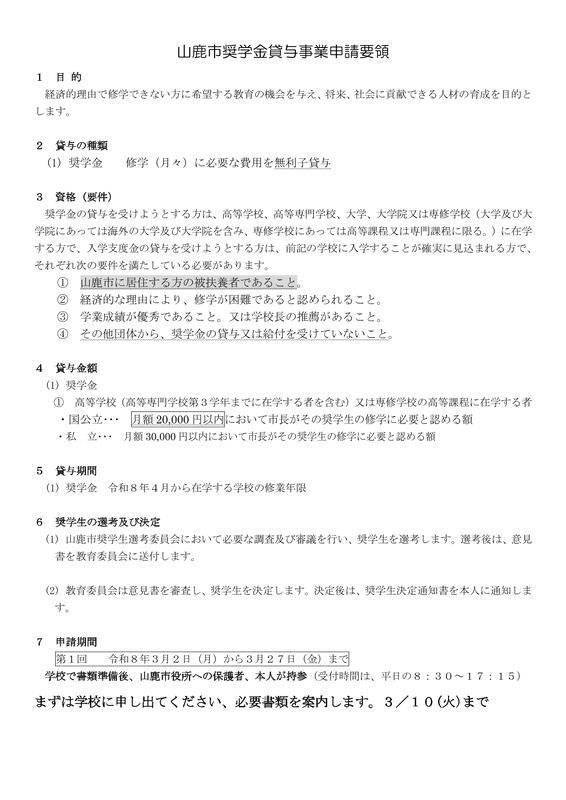 ・令和8年度用 山鹿市奨学資金貸与募集(2/4)