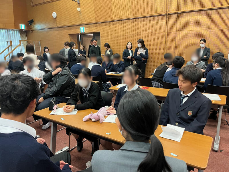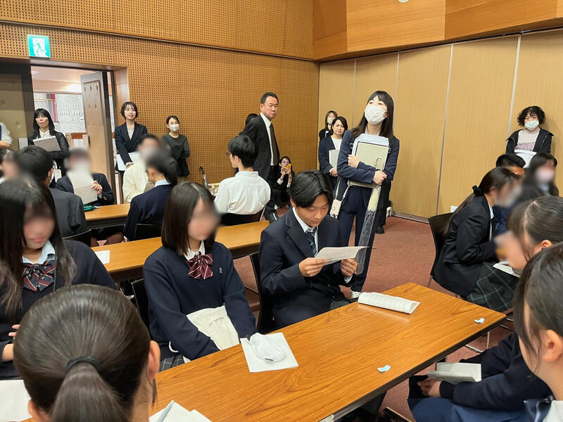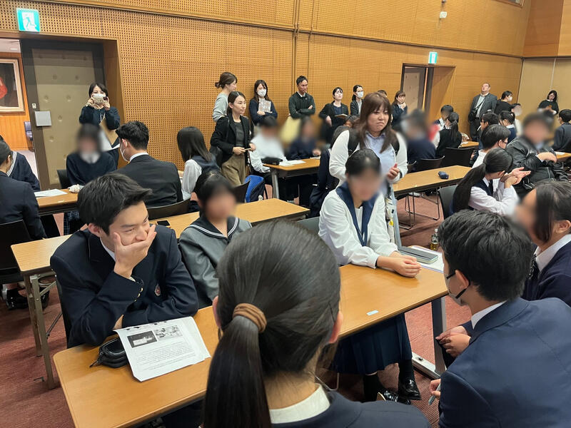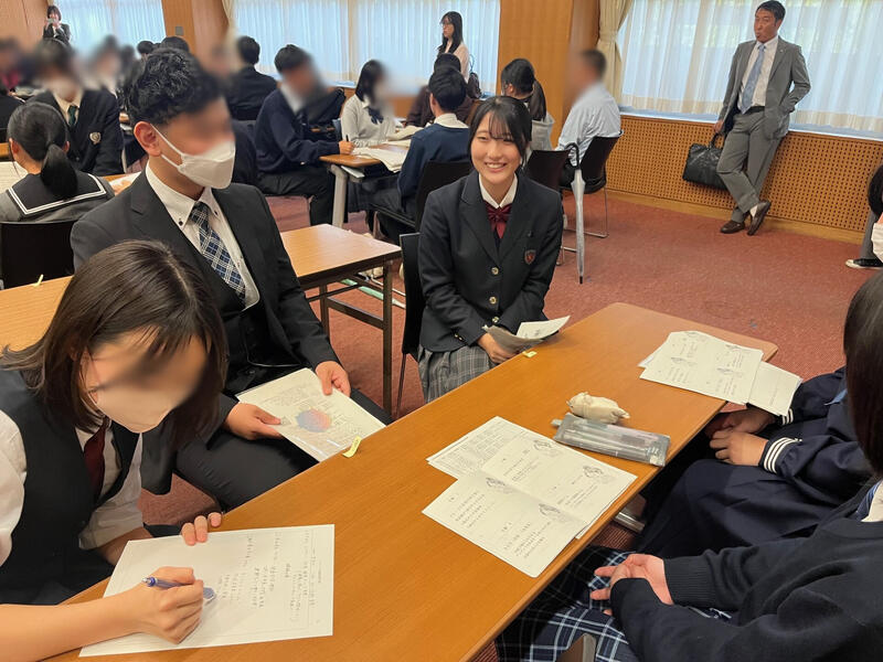 生徒たちは、初めは緊張しながらの交流でしたが、次第に打ち解けて笑顔で意見交換をしていました。