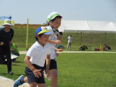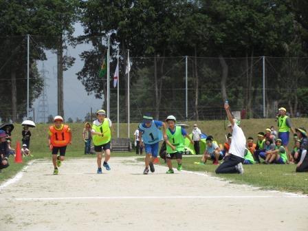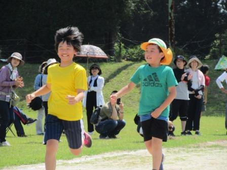 小学部は第一走者で5,6年生の児童が走りました。みんな本気です!!