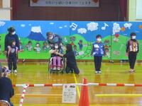 各学部の種目では、児童生徒たちの真剣な表情を見ることができました。小学部は、玉入れとダンスに取り組みました。玉入れでは、保護者の応援で元気いっぱいに球を投げ、『ジャンボリーミッキー』の曲に合わせて笑顔いっぱい元気に踊り、会場が笑顔になりました。中学部は、よさこいソーラン節とチームに分かれて3番勝負に取り組みました。よさこいソーラン節では、鳴子を鳴らしたり、掛け声を出したりし、生き生きと踊ることができました。ま